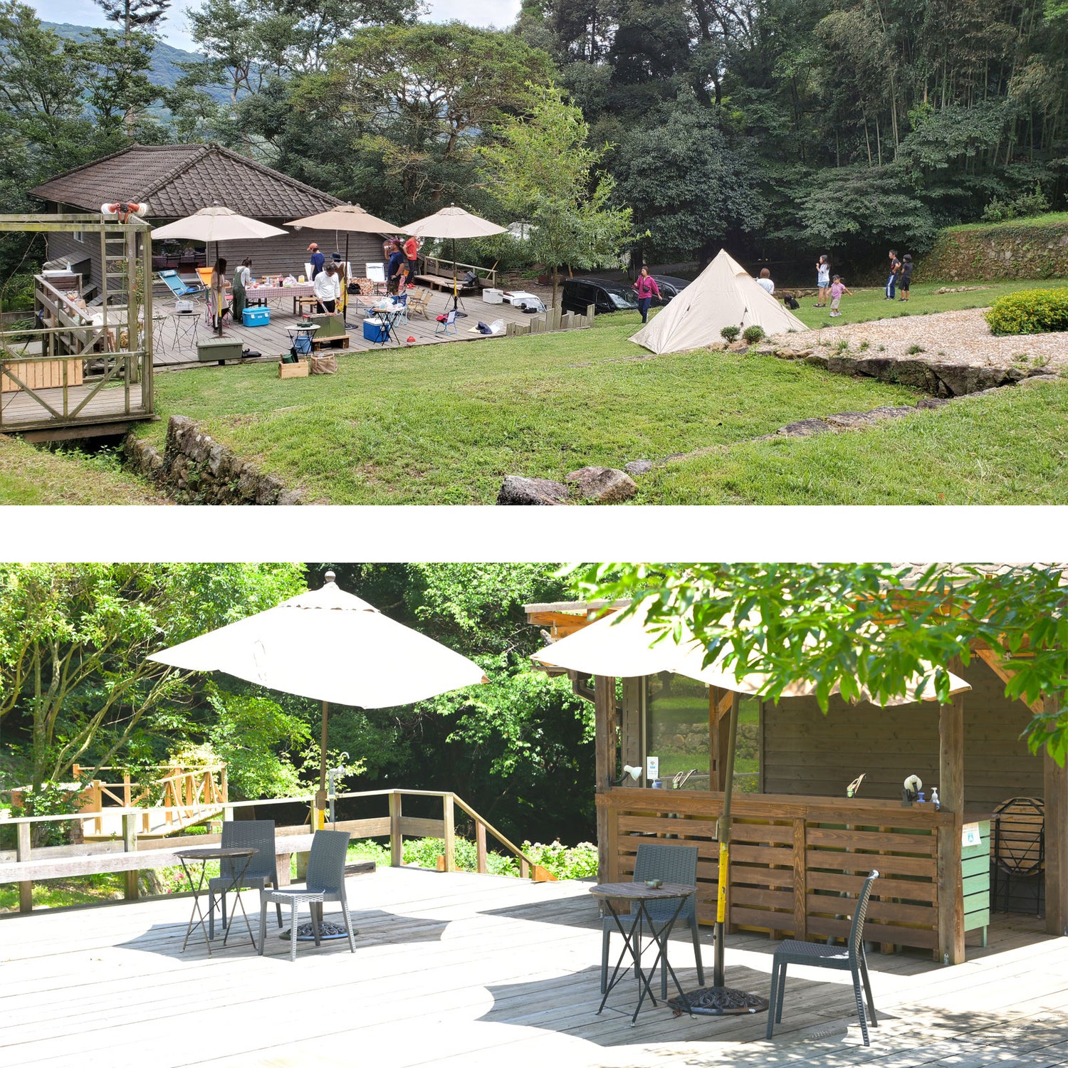 - キャンプエリアは森の中にポツンと隔絶されたエリアです。高速『南関インター』からわずか10分にもかかわらず、豊かな里山の自然が味わえます。