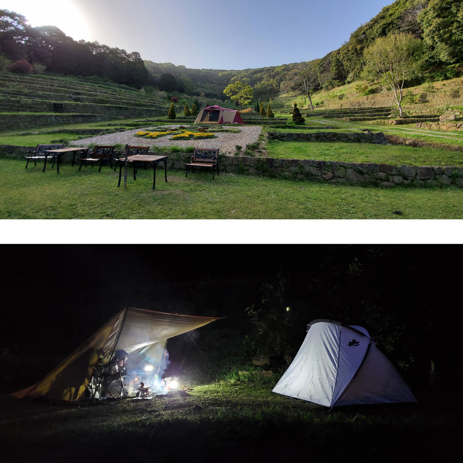 - だんだん畑の一棚を1つのサイトとしております。原則としてグループ毎に1段空けてご案内しておりますので、他のお客様と密になることなくゆったりとお過ごしいただけます。